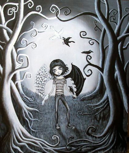 Prima esposizione in Campania per Marinella Sorge le cui opere si caratterizzano per la schiettezza e la nitidezza dello stile e per la capacità descrittiva dei personaggi raccontati. Protagonisti delle sue tele sono quasi sempre personaggi femminili dall’aria dolce e malinconica con un caratterizzante lato oscuro. Prendendo spunto e ispirazione dall'immaginario iconografico delle fiabe e della letteratura, dalla corrente pop-surrealista degli anni '90, dalla passione per la cultura Rock'n'Roll dagli anni '60 ad oggi, Marinella Sorge crea immagini ricche di simbolismi, di delicatezza estrema e ugualmente di forte impatto, in cui malinconia, contrasto e sogno si scontrano e si fondano, metafore di emozioni, paure e sentimenti che si agitano nel nostro animo.