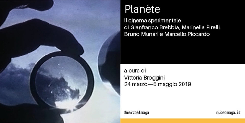Planète è il titolo della mostra, curata da Vittoria Broggini, conservatore curatore del Museo MA*GA, che fino al 5 maggio 2019 approfondisce il percorso sperimentale e critico sul medium cinematografico sviluppato negli anni Sessanta in Italia da Gianfranco Brebbia, Marinella Pirelli e da Bruno Munari e Marcello Piccardo in quella che fu la straordinaria esperienza dello Studio di Monte Olimpino a Como.
