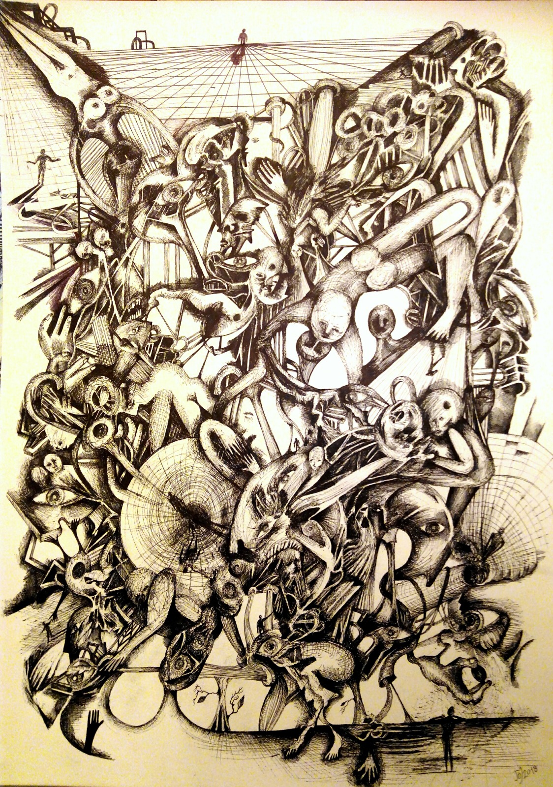E’ la comunicazione tra la mente e l’inconscio, restringendo il campo di tale dialogo/scontro all’elemento definito, all’occhio del ciclone di questa comunicazione, la definizione del termine plasticamente che istiga, in tale limite, sia l’inconscio che la mente alla reciproca provocazione.
