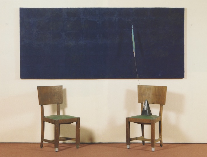 Ilya Kabakov ha saputo trasformare uno sgabello in poesia. Un angelo sospeso a proteggere il mondo racchiuso in questa semplice seduta che diventa rifugio lontano dallo scandire del tempo.