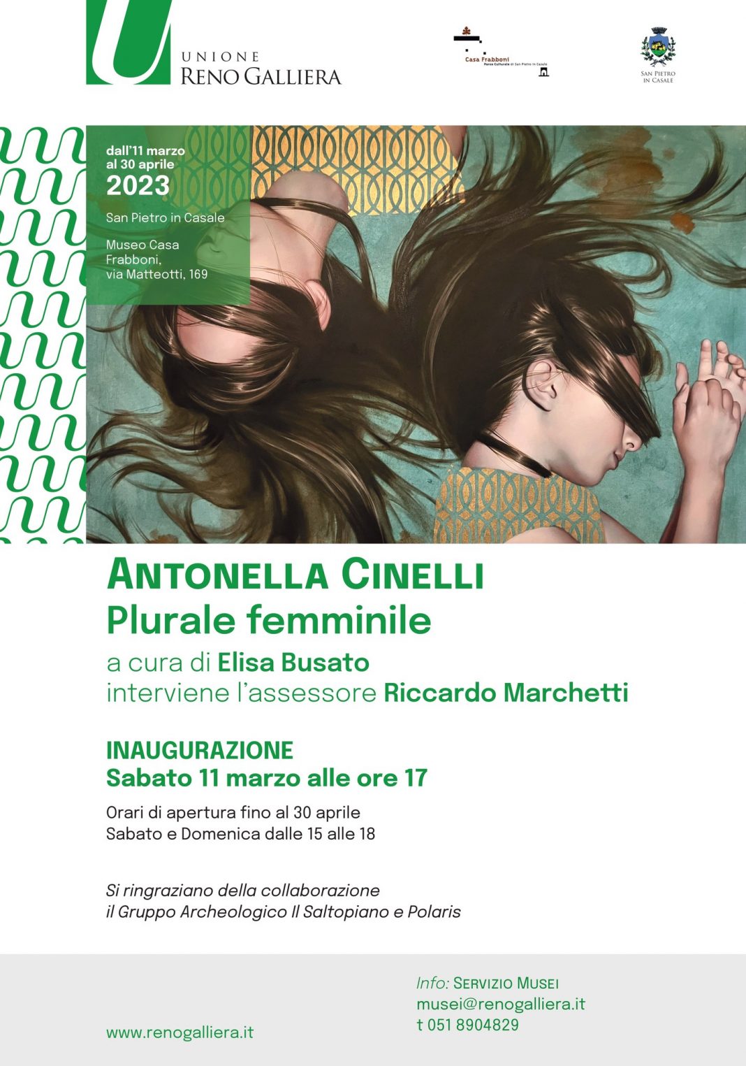 La mostra, curata da Elisa Busato del Servizio Musei dell’Unione Reno Galliera, prosegue la politica culturale dell’Assessore del Comune di San Pietro in Casale, Riccardo Marchetti, che negli ultimi anni ha trasformato lo spazio espositivo del Museo Casa Frabboni, che già ospita un’interessante collezione archeologica, valorizzando gli spazi dedicati alle mostre temporanee con un occhio di riguardo all’arte contemporanea, favorendo artisti legati affettivamente al territorio metropolitano ma già affermati nel panorama artistico nazionale e internazionale.