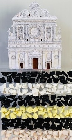 La mostra si apre con un esempio significativo di poesia scritta con la materia: la scultura dedicata alla Basilica di Santa Croce di Lecce (tra le più elevate manifestazioni dello stile barocco locale).