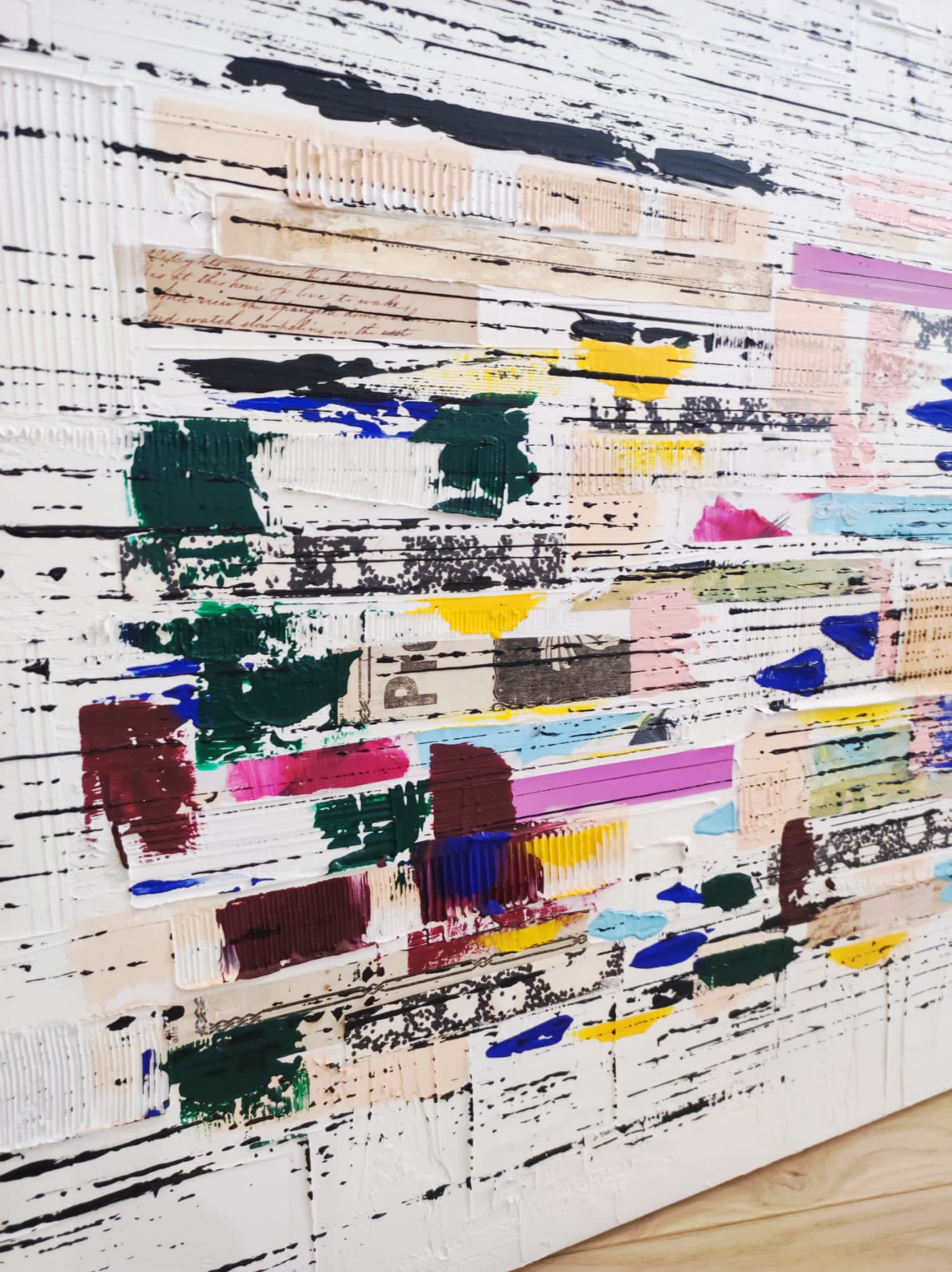 Le opere in mostra, realizzate con tecnica mista — carta, gesso, polvere di marmo di Carrara, terre naturali su tela — sono una dichiarazione d’intenti: nei colori e nei materiali utilizzati scompare ogni distinzione tra buoni e cattivi, cittadini e detenuti. Siamo tutti esseri umani, con le nostre fragilità, le nostre storie.