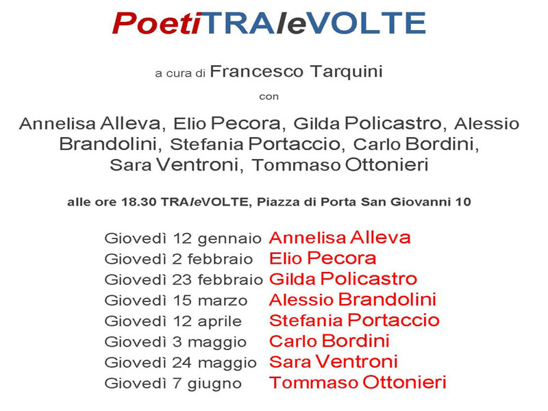 Incontri con otto poeti: Annelisa Alleva, Elio Pecora, Gilda Policastro, Alessio Brandolini, Stefania Portaccio, Carlo Bordini, Sara Ventroni, Tommaso Ottonieri