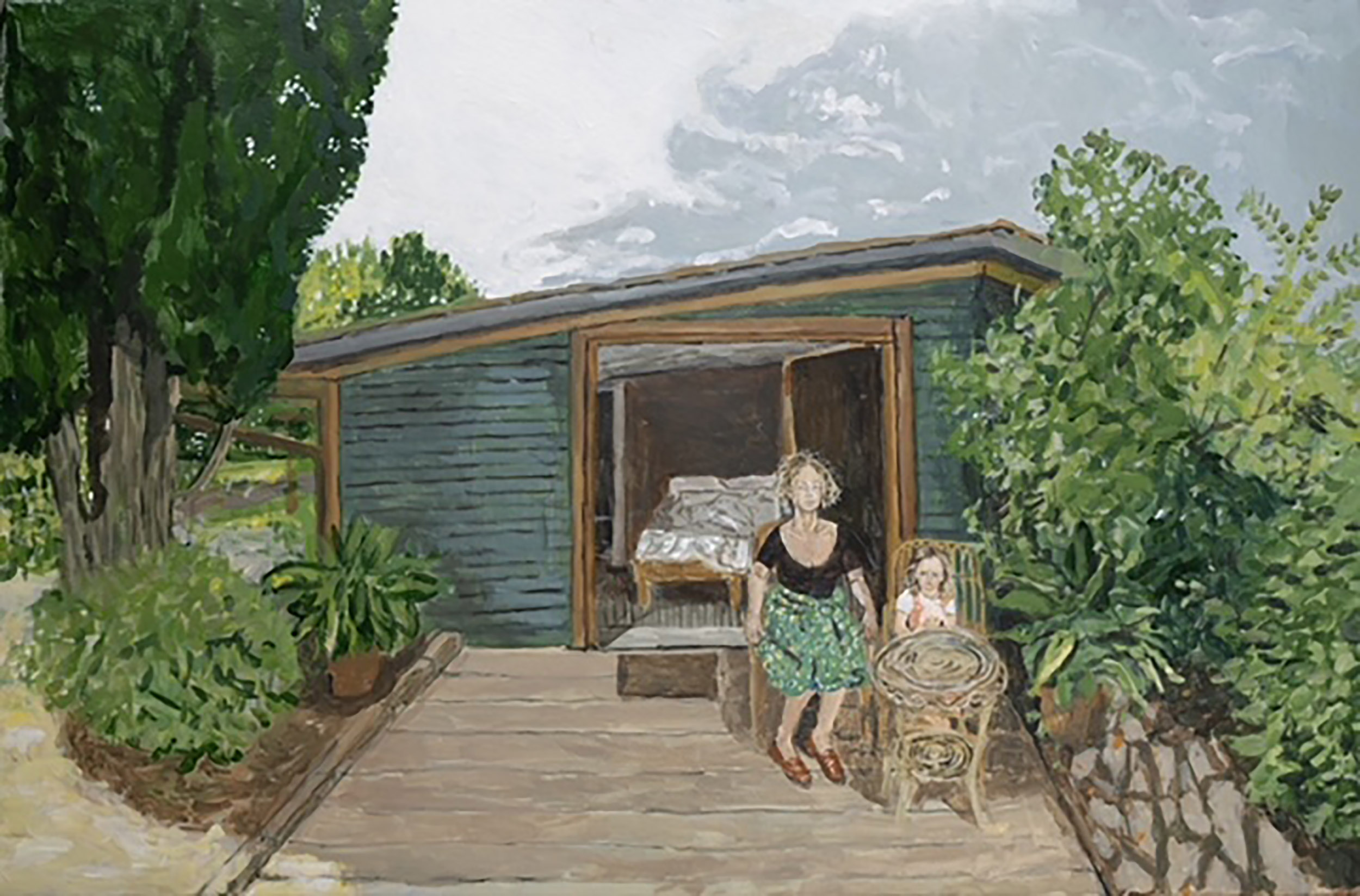 Ricordando la struttura visiva di un racconto fotografico improvvisamente interrotto o altrimenti in fase di avanzamento, la costruzione spaziale delle opere ha un carattere scenografico. Difatti, gli scenari dipinti derivano da fotografie, la cui trasposizione pittorica ne rivela un carattere inaspettatamente intimo. Da ciò proviene la scelta dell’artista di utilizzare il piccolo e medio formato, rivelante la propria spontanea necessità, di svelare con lucidità, alla pari di una privata confessione, la propria condizione di donna, moglie e madre.