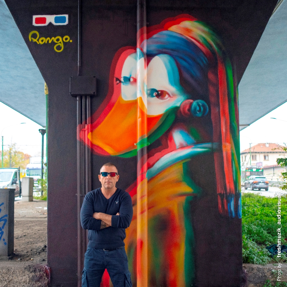 Tra gli artisti internazionali invitati figura Pongo 3D, la cui pratica artistica si distingue per un dialogo innovativo con lo spazio pubblico e l’immaginario contemporaneo. Pongo è conosciuto – tra le numerose realizzazioni urbane – per i suoi iconici murales con le papere in 3D disseminati in diverse aree di Milano, opere che hanno catturato l’attenzione cittadina e contribuito a rinnovare il panorama della street art locale che, con l'artifizio del 3D, ripercorre la storia dell’arte.