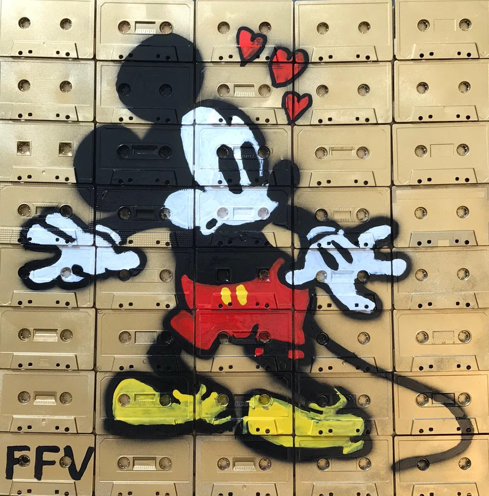 Da sempre tra gli artisti di punta di Restelliartco, Fabio Ferrone Viola esporrà “Kennedy is Alive” del 2021, collage con proiettili e tecnica mista, tributo al Presidente americano più amato di sempre, interprete di una Nazione sorridente, positiva che sapeva farsi amare dal mondo. Nel percorso espositivo di “Pop Sounds Good”, l’artista esporrà anche la sua” Fuel of Marilyn”, 2020, tanica di benzina con sopra dipinta l’immagine della diva, il cui destino è stato così indissolubilmente legato al Presidente. E a richiamare il tema della musica, declinato in chiave pop, il “Gold Mickey” del 2021, un Mickey Mouse, interamente realizzato grazie al riciclo di vecchie musicassette. Un tema molto caro a Fabio Ferrone Viola quello del riciclo: lattine, tappi di bottiglia, materiali di uso quotidiano, sono recuperati e trattati con il colore per riprendere vita in altra forma. Un’arte a favore dell’ambiente mossa dalla sofferenza per lo spreco che vuole richiamare l’attenzione sul tema del disastro ecologico. Ma la Pop Art di Fabio Ferrone Viola sarà anche protagonista di una importante iniziativa Charity, all’interno della quale la Galleria Restelliartco sarà partner di Events Group per il Progetto “Back to the Music”, una serie di concerti streaming come risposta all’assordante silenzio all’interno del quale la musica è stata relegata, e di cui parte del ricavato sarà devoluto all’Associazione SOS MUSICISTI.