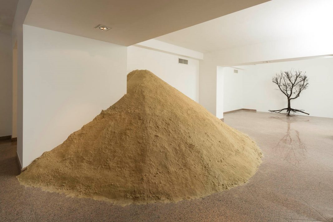 Il rifugio è il tema costante della mostra e tutti gli accessi alle sale espositive del secondo piano della Galleria sono tamponati con materiali edili quali tavole in legno, pannelli, mattoni in calcestruzzo, cataste di legname impilato. Questo a significare l’inaccessibilità e la preclusione e, non direttamente, la reclusione di chi sogna l’attraversamento di terre, continenti, aree geografiche, senza in realtà poterne realmente fruire; obbligato ad un percorso predeterminato dove possibili “varchi” sono spesso inaccessibili.