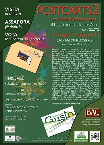 Al via sabato 31 maggio la seconda edizione di PostcARTs..e tanti cordiali nutrimenti – Cartoline d’Arte per Assisi, la mostra collettiva con 81 opere di artisti italiani e stranieri allestita presso BAC Assisi in via comune vecchio ad Assisi fino al 21 giugno e patrocinata dalla Città di Assisi