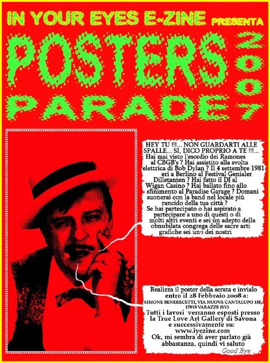 La “Poster Parade 2007” ha come obiettivo la realizzazione di un progetto grafico, aperto a tutti e no profit, in cui si chiede di produrre un poster di un concerto/festival/rave/ soundsystem