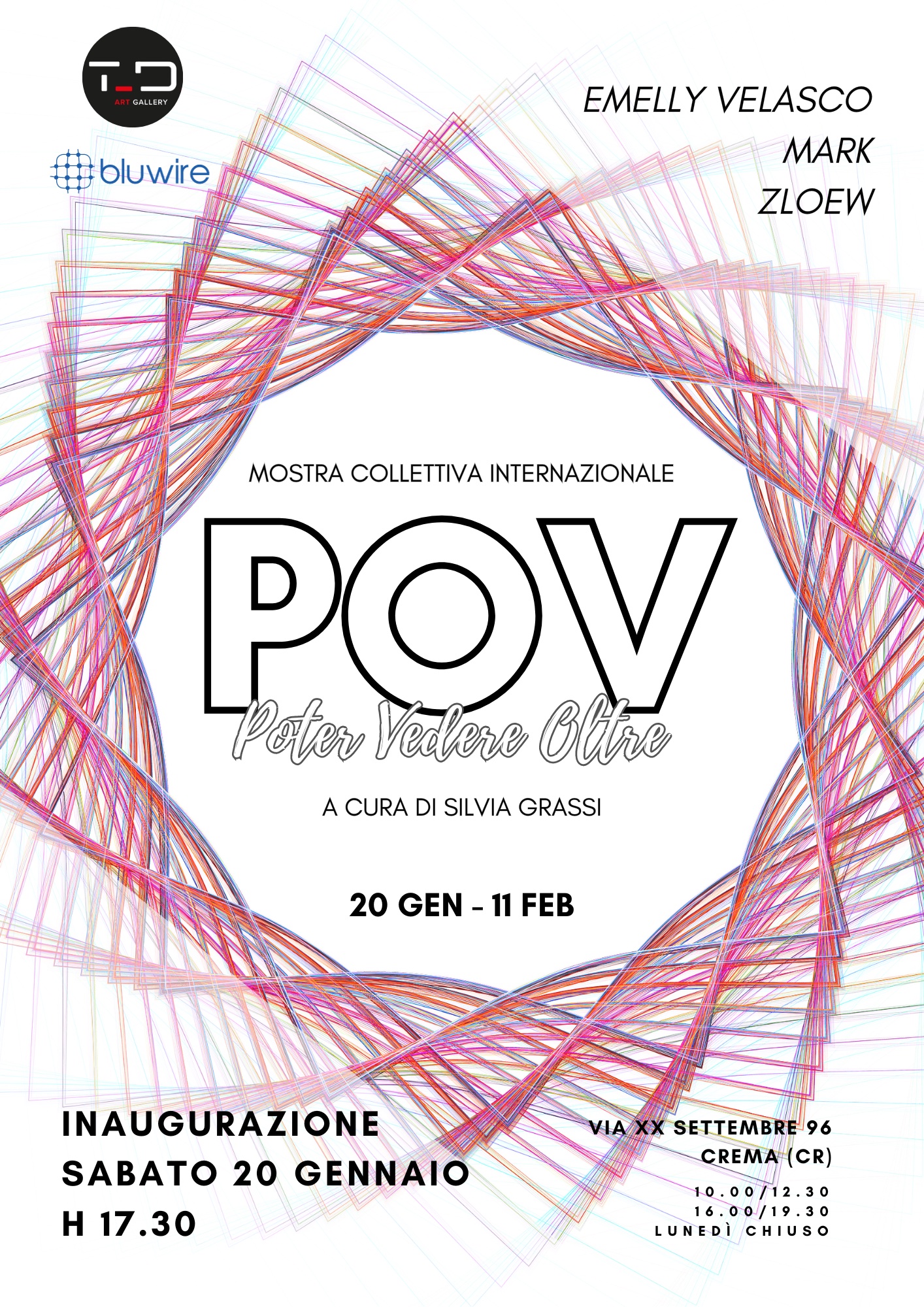 La T-D Art Gallery, in collaborazione con Bluwire, presenta la Mostra collettiva con artisti internazionali “POV: Poter Vedere Oltre” curata dalla curatrice d’arte Silvia Grassi.