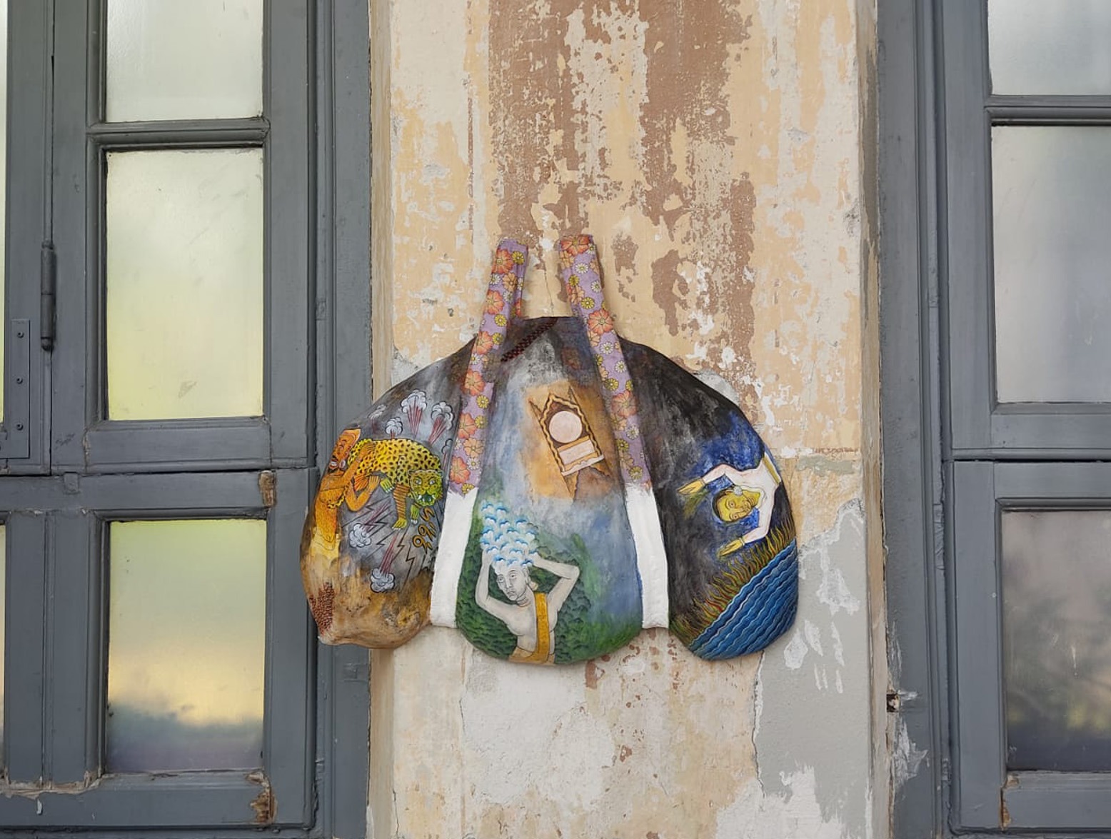 Il sacco, simbolo di un’ambigua resistenza è anche scultura. Realizzata in cartapesta è al tempo stesso leggera e pregna della memoria contenuta nei vecchi giornali che la compongono.