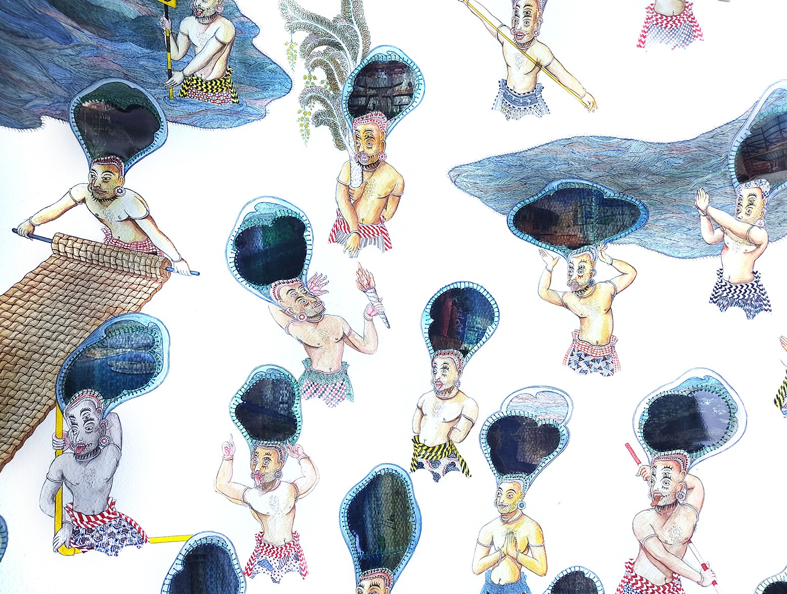Nelle illustrazioni dedicate a Slave Island è lo spazio vuoto a dominare e a configurare un astratto landscape dove in un raffinato gioco di rimandi simbolici e complesse stratificazioni le architetture tradizionali galleggiano a fianco di minacciosi cantieri, inquietanti creature e corpi mutanti.