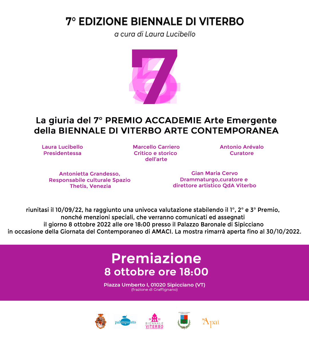 la Giuria del 7° Premio Accademie Arte Emergente della Biennale di Viterbo Arte Contemporanea.