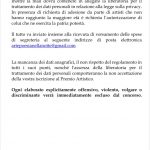 Inoltre la mail dovrà contenere in allegato la liberatoria per il trattamento dei dati personali in relazione alla legge sulla privacy. In presenza di richiesta di adesione da parte di artisti che non hanno raggiunto la maggiore età è richiesta l’autorizzazione di colui che ne esercita la patria potestà.