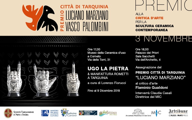 Premio Città di Tarquinia Luciano Marziano I Edizione assegnato al critico d’arte Flaminio Gualdoni e Mostra delle ceramiche di Ugo La Pietra prodotte presso la manifattura Rometti di Umbertide