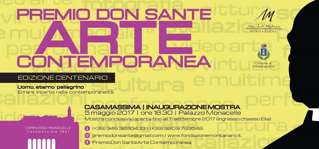 La Fondazione Mons. Sante Montanaro di Casamassima (BA) vi invita venerdì 5 maggio prossimo alle ore 18.30 presso il Palazzo Monacelle in via Roma per la mostra collettiva delle opere finaliste del ‘Premio don Sante per l’arte contemporanea’, bandito in occasione delle celebrazioni del Centenario della nascita del monsignore, il 9 settembre scorso.