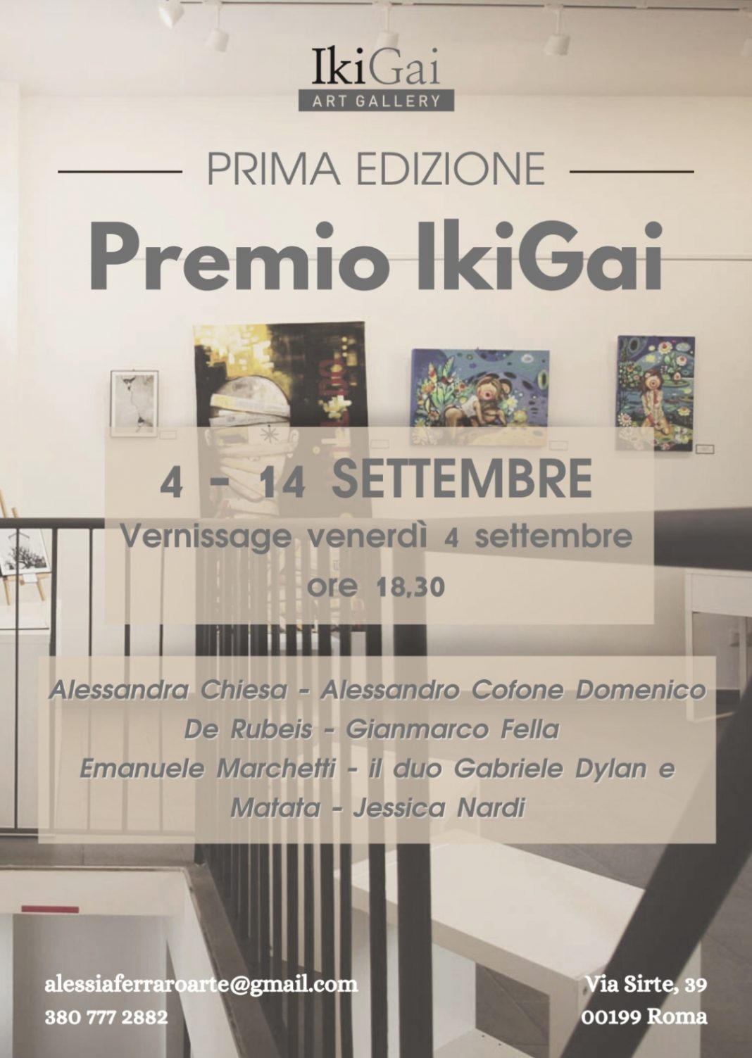 L’IkiGai Art Gallery ospita la prima edizione del Premio IkiGai, rivolto a tutti gli artisti emergenti under 35. L’obiettivo è scoprire nuovi talenti e presentarli al pubblico romano e non solo.