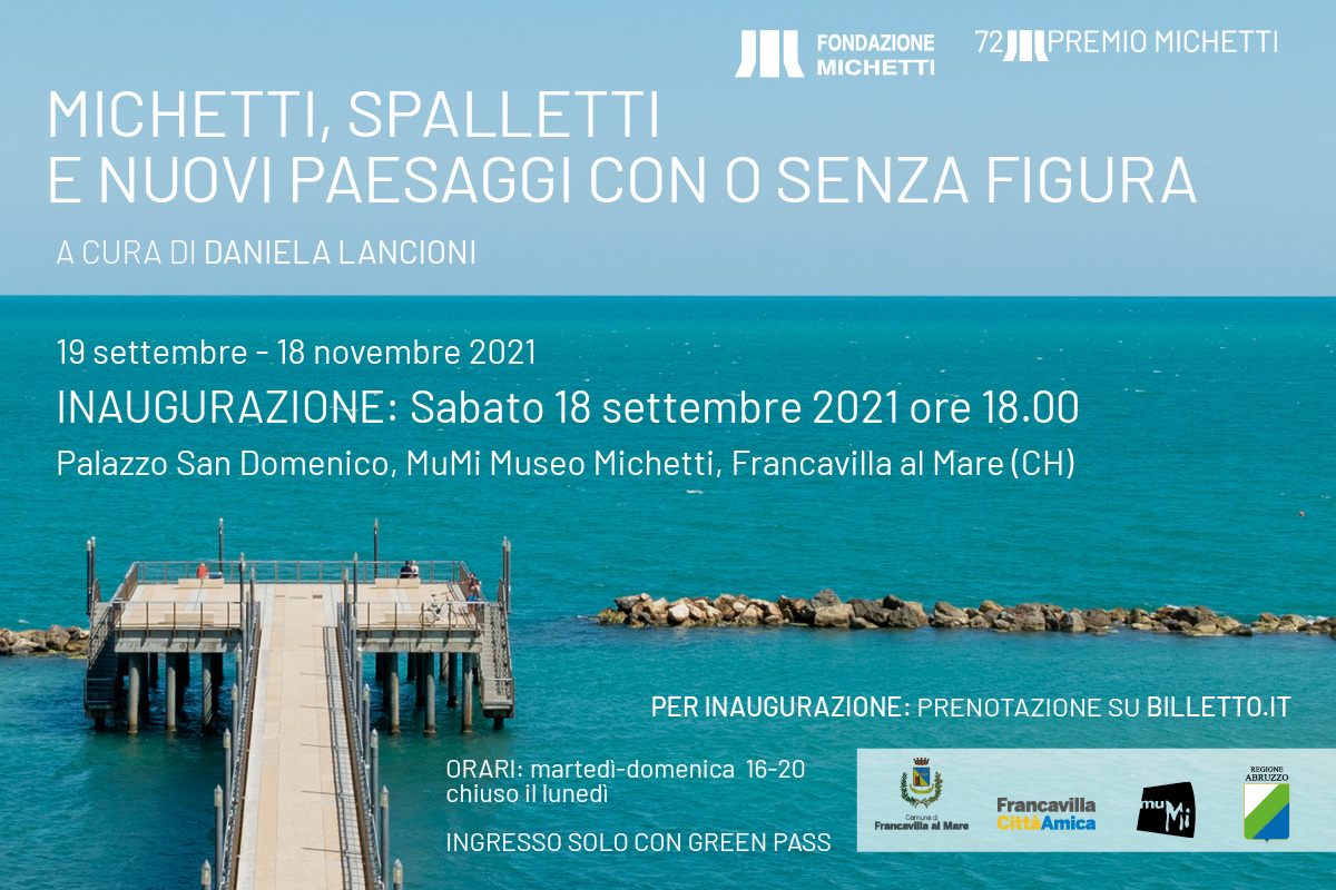 Il Premio Michetti apre la 72° edizione con la mostra Michetti, Spalletti e nuovi paesaggi con senza figura a cura di Daniela Lancioni. Ispirata dalla figura di Francesco Paolo Michetti, pone lo sguardo al tema del paesaggio con una parabola e un omaggio all’artista Ettore Spalletti.