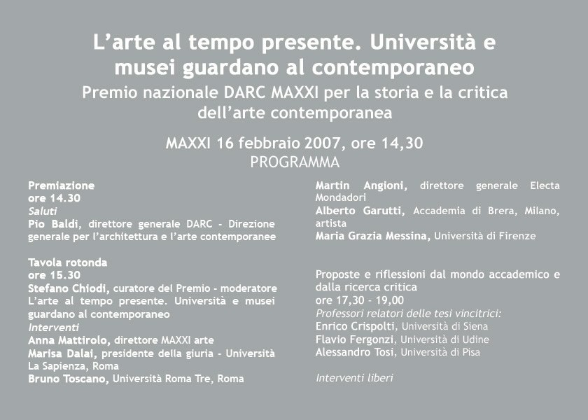 Premio Nazionale DARC-MAXXI per la storia e la critica dell’arte italiana contemporanea 2007