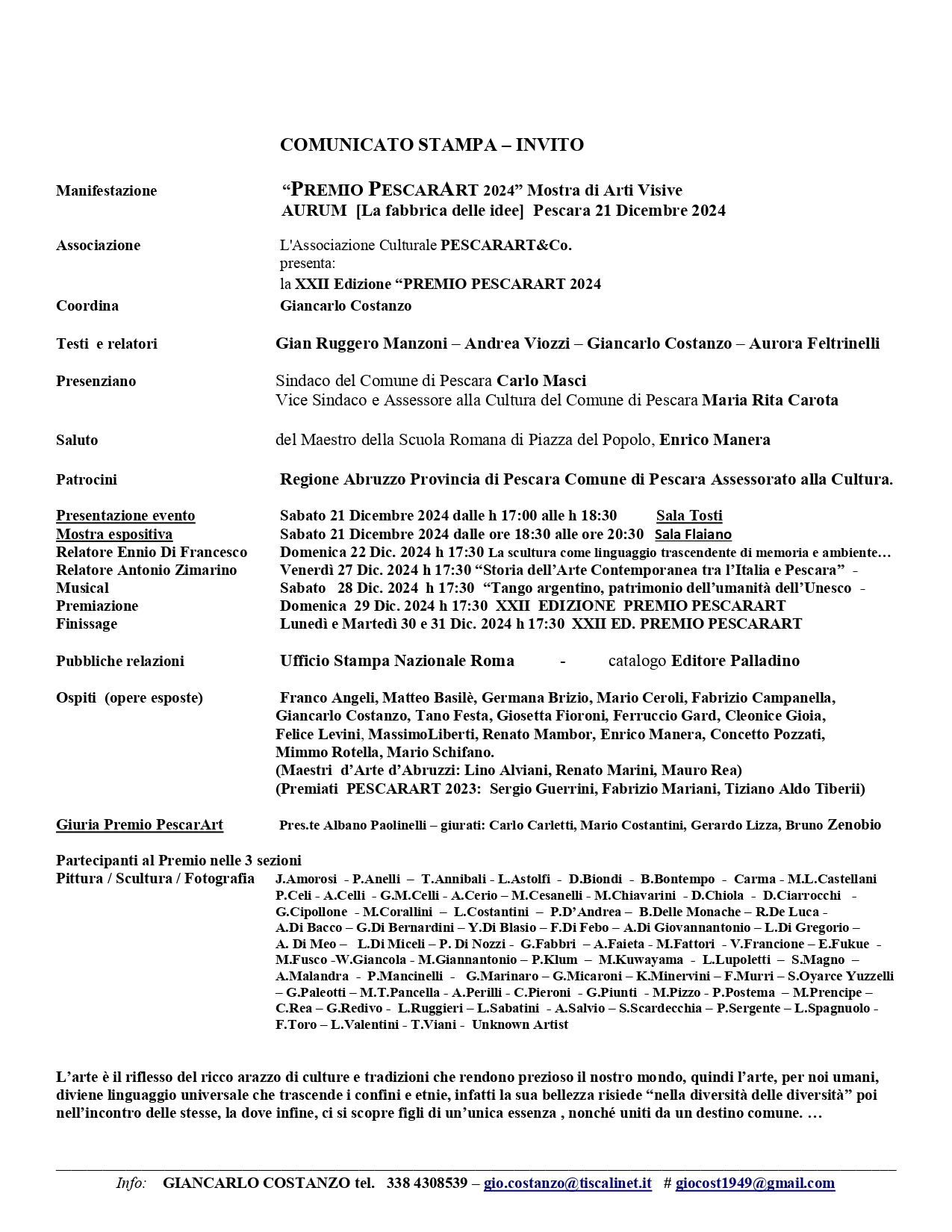 Manifestazione “PREMIO PESCARART 2024” Mostra di Arti Visive