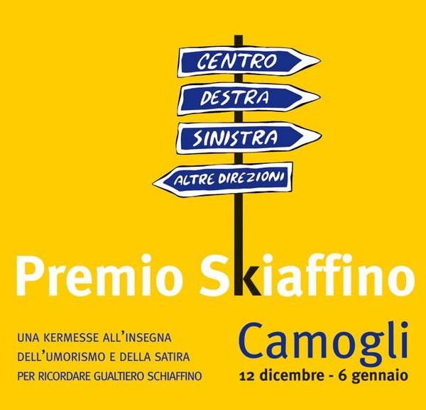 La mostra personale dal titolo -Centro, destra, sinistra, altre direzioni. La politica satirica di Gualtiero Schiaffino- raccoglie una minuziosa antologia delle invenzioni umoristiche dedicate da Skiaffino alla satira politica (vignette, partiti, simboli), alla satira in politica (le campagne elettorali) e alla politica satirica (i partiti politici immaginari). Il catalogo della mostra, edito da Feguagiskia'studios, comprende interventi di Arnaldo Monteverde, Ferruccio Giromini, Sergio Staino, Walter Fochesato, Giovanna Riccobaldi.