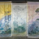 Jorge Cavelier partecipa con un’installazione preziosa e delicata. Le sue splendide foreste sono dipinte su sottili veli trasparenti. La comunità vegetale è essenziale per tutte le altre e per la vita del pianeta. Gli equilibri tra flora, fauna e umanità sono fragili come le sfumate trasparenze di quest’opera evocativa.