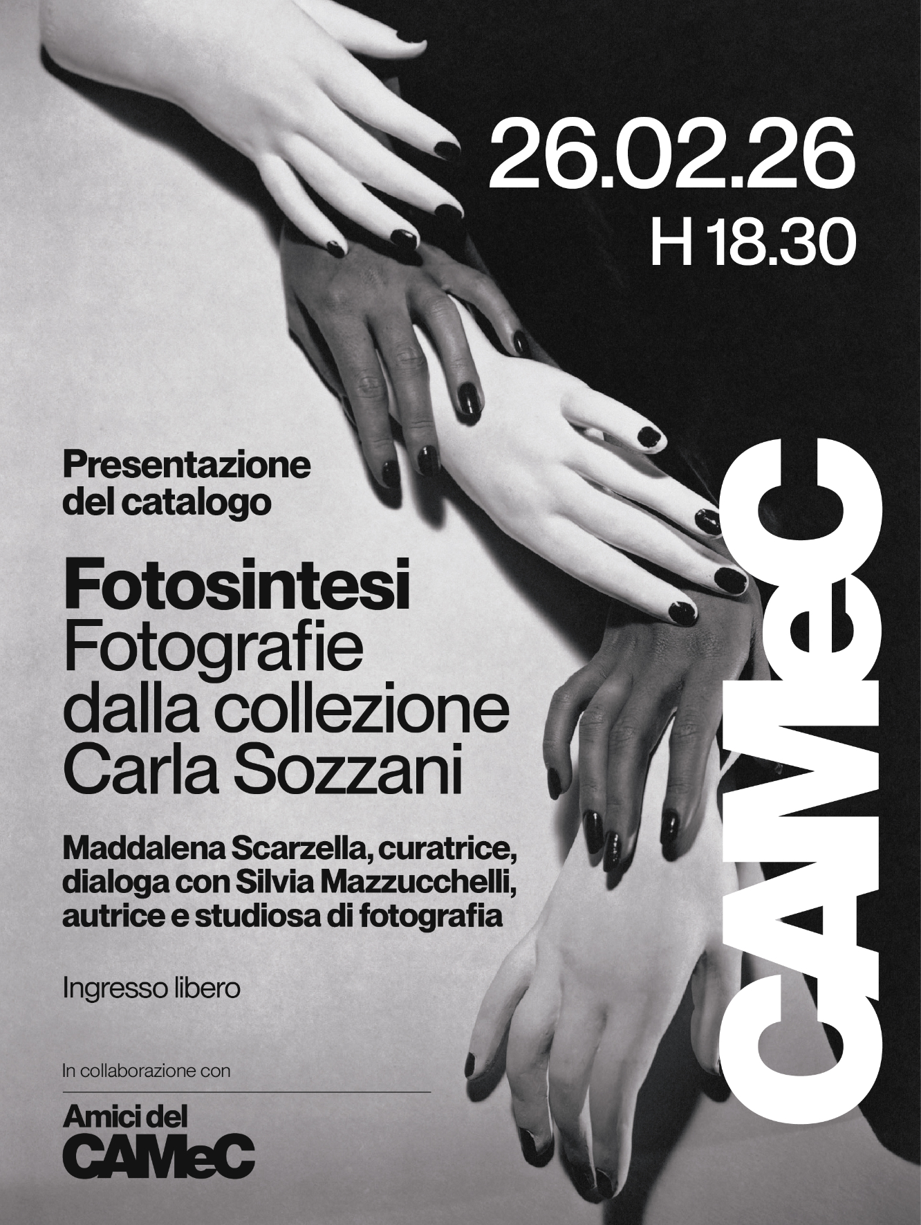 Giovedì 26 febbraio alle ore 18.30, presso il CAMeC – Centro d’Arte Moderna e Contemporanea della Spezia, verrà presentato il catalogo della mostra “Fotosintesi. Fotografie dalla collezione Carla Sozzani”, che sarò aperta fino al 22 marzo