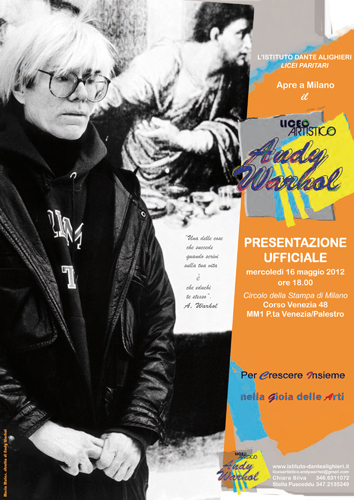 L'Istituto Dante Alighieri di Cagliari, scuola ventennale di eccellenza europea con i suoi licei paritari classico e scientifico, apre a Milano il Liceo artistico paritario Andy Warhol che si pone, con le sue progettualità e la formazione interdisciplinare, come scuola di punta italiana e internazionale, grazie non solo alla produttività della preparazione che gli allievi potranno acquisire, ma alle infinite occasioni che solleciteranno gli studenti a quelle che sono le ampie aperture di vita sul campo (stage in città europee; scambi; relazioni con Accademia della Scala, Università e Accademie di Belle Arti; visite a Musei e Gallerie; visite a studi di artisti; lezioni sul campo; partecipazioni a concorsi e convegni; ecc.).