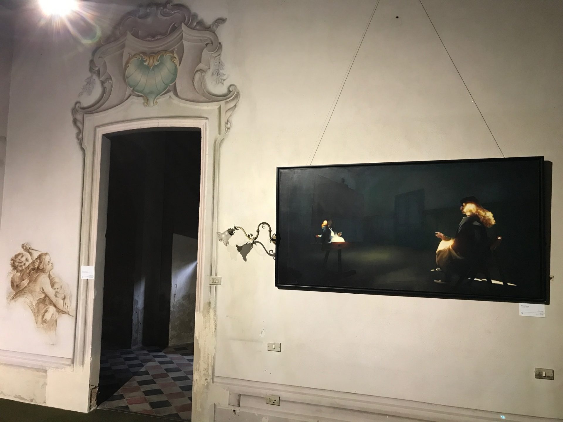 Presenza fisica: Le opere qui esposte richiamano l’idea dell’ingresso così da invitare il visitatore a entrare, fisicamente all’interno del percorso. Invito a un a presenza fisica ma anche emotiva dello spettatore.