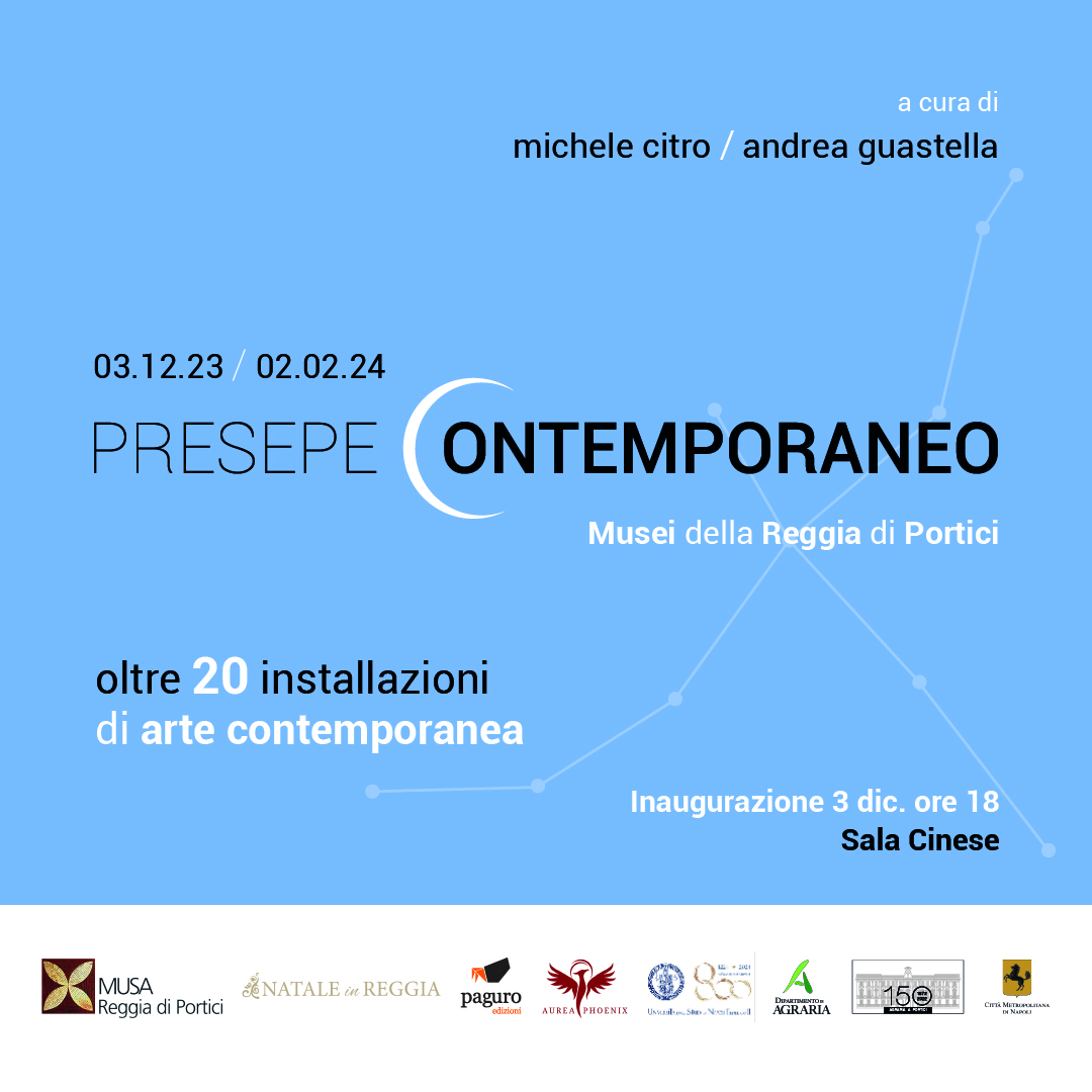 Dal 3 dicembre 2023 al 2 febbraio 2024 gli interni della Reggia di Portici, sede della Facoltà di Agraria dell'Università degli Studi di Napoli "Federico II" e del Centro MUSA — Musei della Reggia di Portici e i giardini dell’Orto Botanico di Portici, ospiteranno la collettiva di pittura e di scultura “Presepe Contemporaneo”.