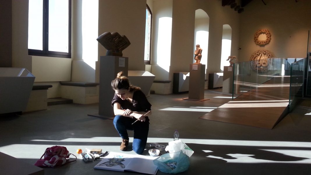 Un’artista al lavoro sotto lo sguardo attento dei visitatori. Paola Angelini trasferisce il suo atelier fra le sale del Pretorio per catturare l’essenza del museo e restituirla su tela