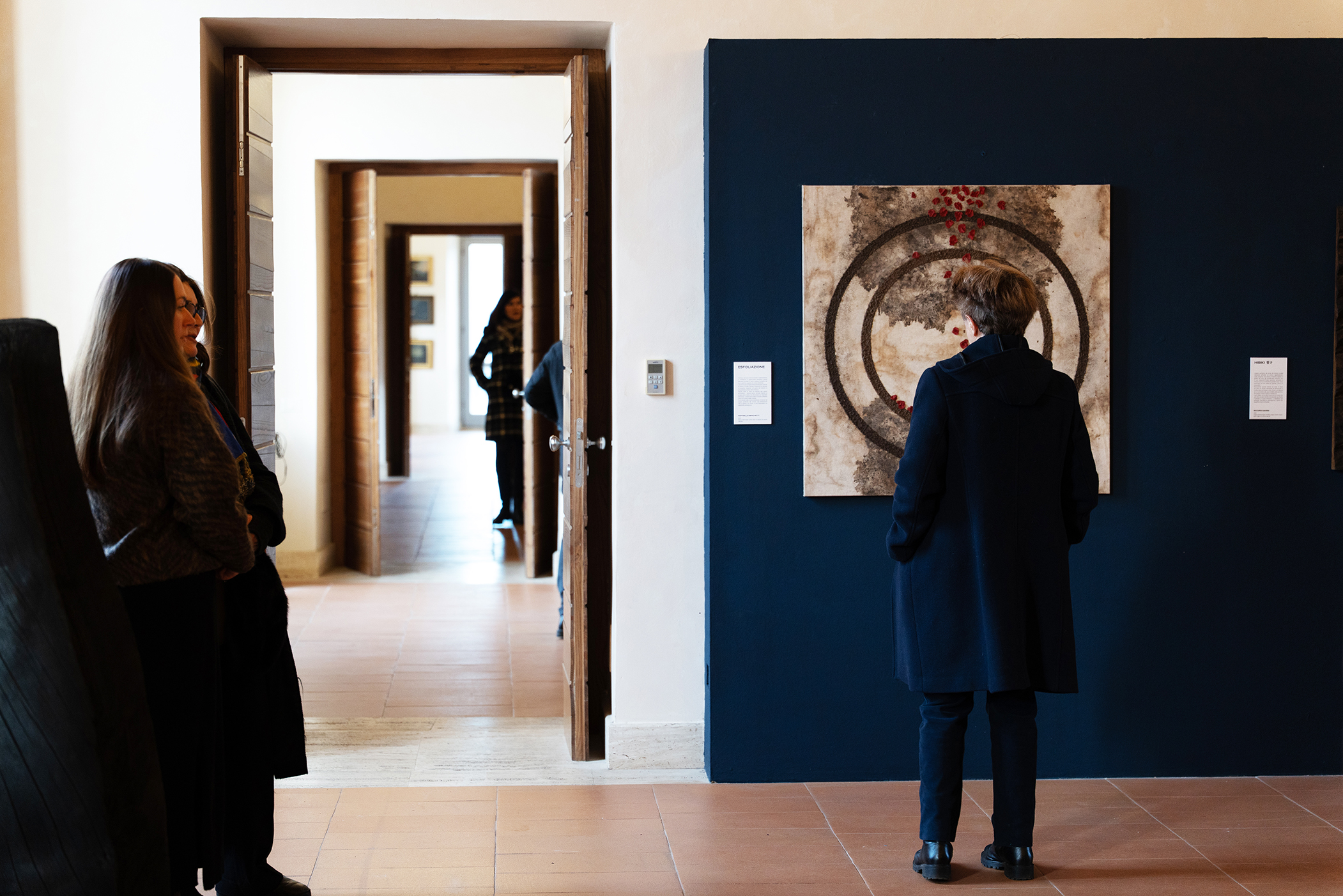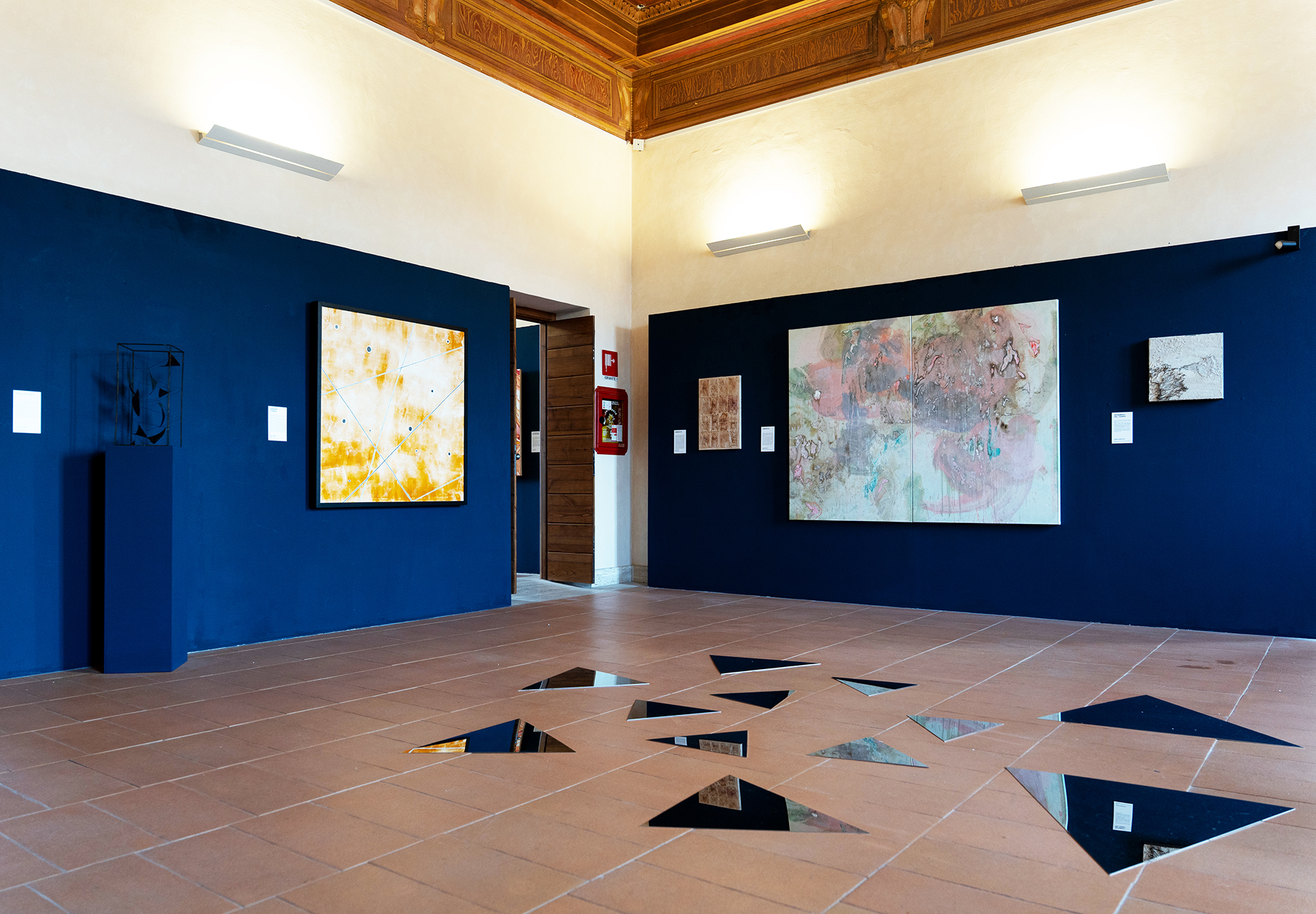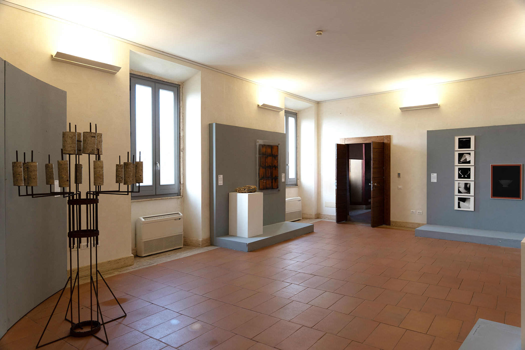 L’allestimento conduce le opere, diverse per approccio tecnico e sensibilità artistica, nelle stanze del piano nobile di Palazzo Sforza Cesarini e nell’anticamera della Sala delle Armi, strutturando un percorso variegato che accompagna il visitatore attraverso le differenti sfumature di significato maturate nella riflessione sul tempo.