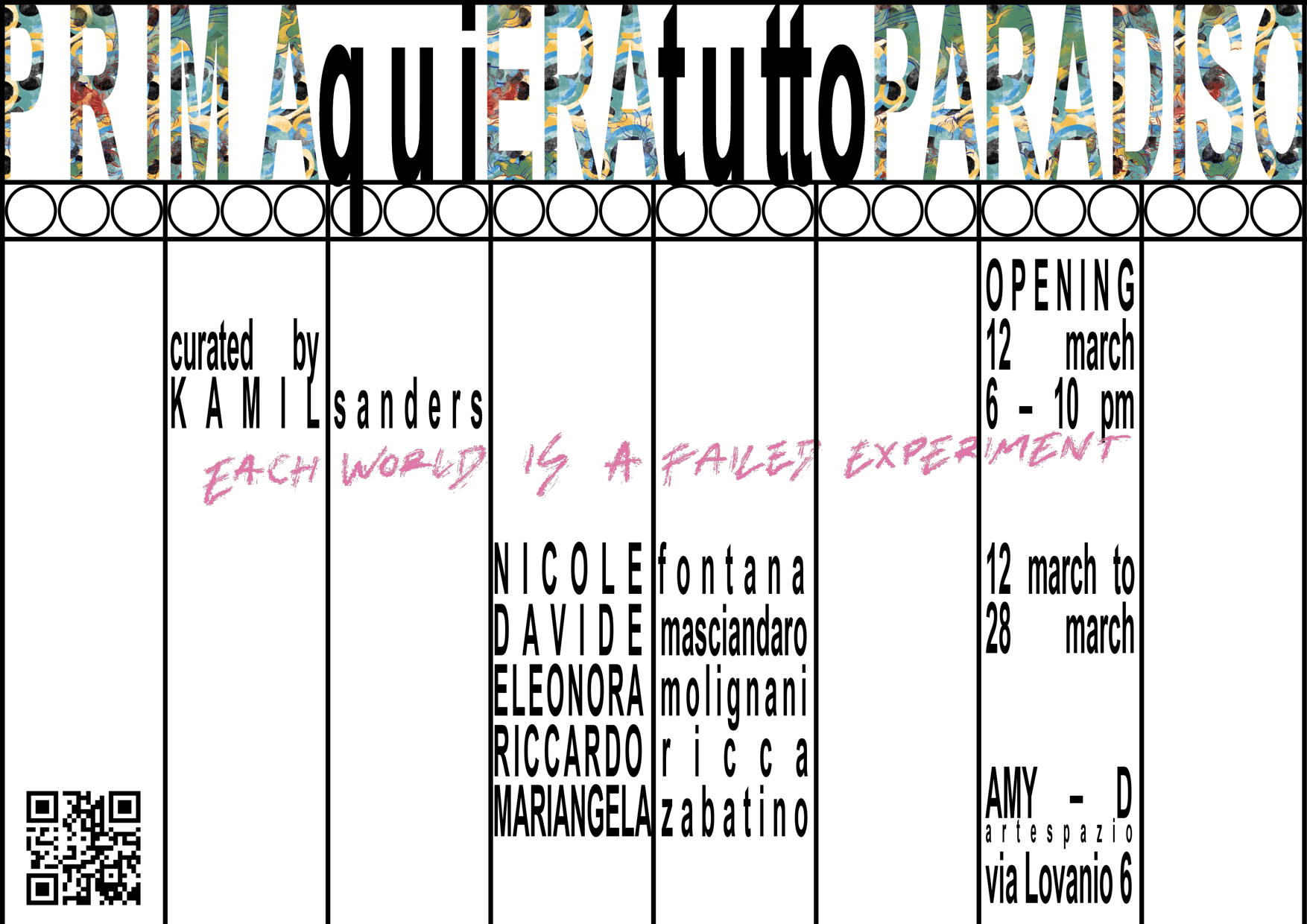 Amy–d Arte Spazio Milano annuncia PRIMA qui ERA tutto PARADISO, progetto espositivo economArt a cura di Kamil Sanders, che apre i battenti il 12 marzo alle 18.00.