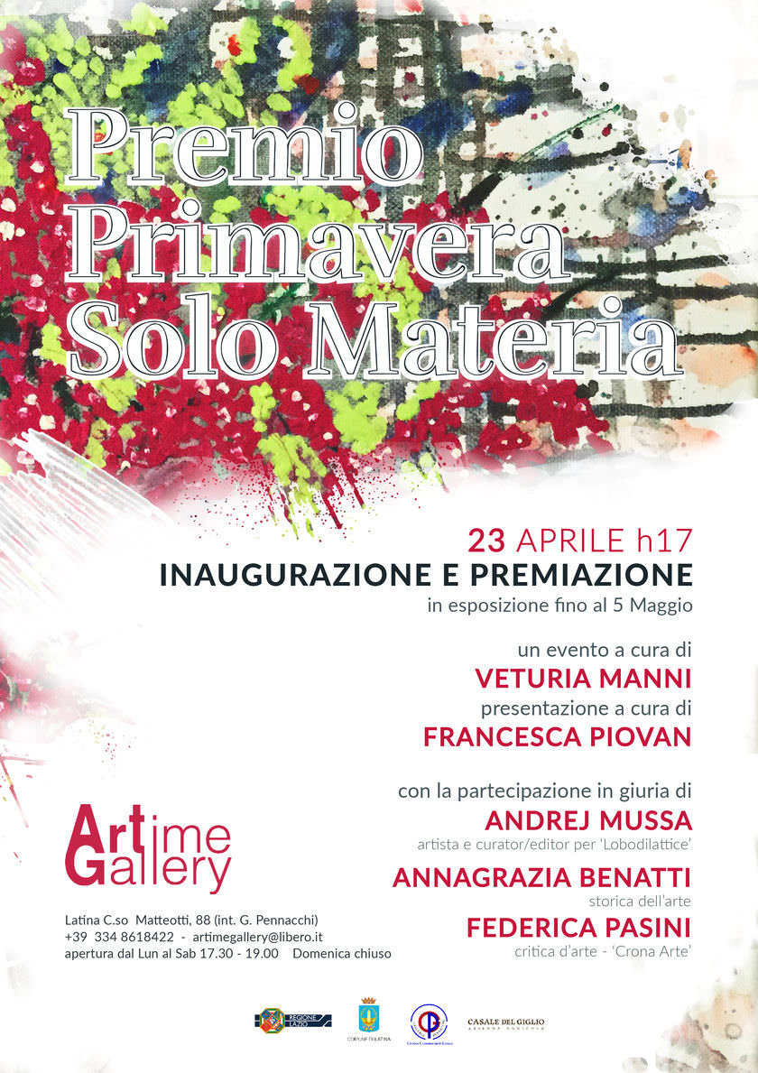Il giorno 23 Aprile, lo spazio espositivo Artime Gallery, a Latina, ospiterà la prima edizione del Premio Primavera, solo Materia.