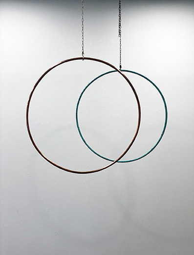 rob van den berg porta avanti questa ricerca attraverso lo studio della materia e delle sue reazioni. La sua indagine può talvolta ritenersi affine a quella di tipo alchemico: l’artista sceglie di sottoporre diversi oggetti a temperature molto elevate cercando di sublimare l’essenza della materia oppure palesa la natura alchemica del processo creando un’opera composta da due elementi dello stesso materiale, uno ossidato e l’altro lucido, che affiancandosi ricordano il simbolo dell’infinito.