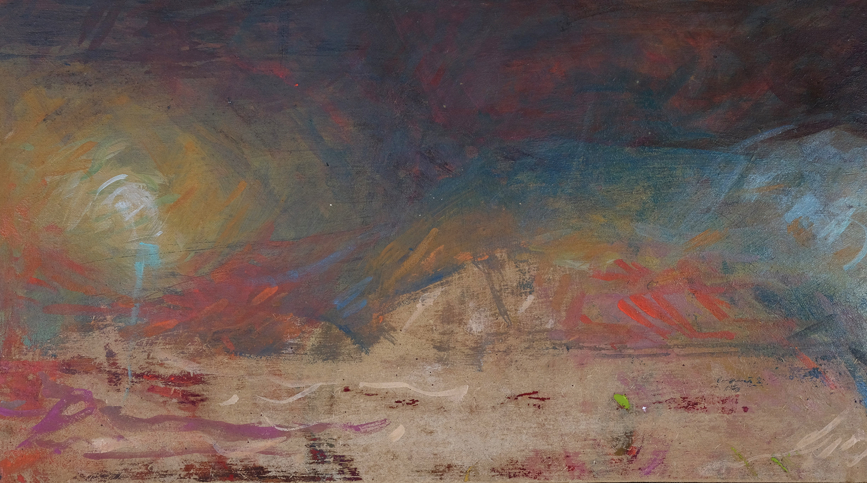 La curatrice Giada Caliendo attraverso queste parole ci parla dei “luoghi dell’altrove” di Ruocco, in un ensamble di pittura e acquarelli, su tela, legno e carta.