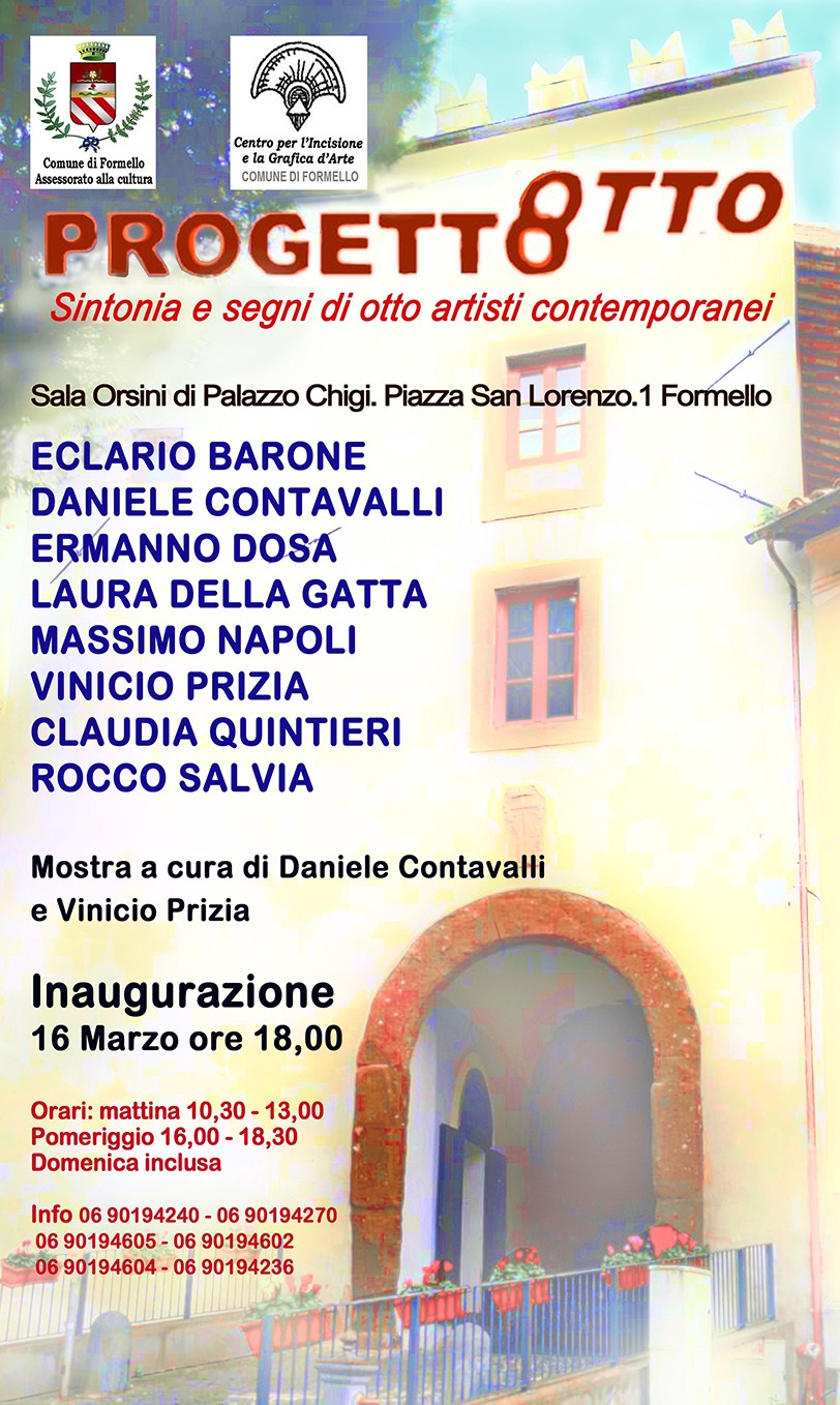 il Centro per l’Incisione e la Grafica d’Arte del Comune di Formello diretto da Vinicio Prizia, invitano ad un nuovo appuntamento all’interno della rassegna “Incisioine e..” dal titolo “Progetto 8”