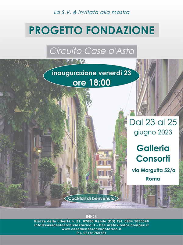 Presso la Galleria Consorti di via Margutta, 52/a, nel cuore pulsante dell’arte, apre i battenti alle ore 18:00 la mostra Collectionist Gallery; evento curato dalla casa d’Aste Archivio Storico e organizzata da Acca Edizioni con dieci artisti selezionati per l’occasione. Pregevoli autori dell’arte italiana entrati a far parte del circuito delle case d’aste, che si stanno imponendo sempre più sul complesso panorama del mercato ottenendo ottimi risultati e suscitando l’interesse di gallerie, collezionisti e mercanti d’arte. I Maestri Gabriella Porcù, Margherita Casadei, Nicola Morea, Maria Gabriella Manunza, Anna Capurso, Michele Cammarota, Marco Cotroneo, Rocco Regina e Elisa Dore presentano delle opere diverse e mai banali capaci di attirare, coinvolgere ed affascinare l’osservatore senza pretendere di spiegare con l’arte ciò che è noto per rimanere, in fondo, sempre un po’ misterioso. All’interno dell’evento, inoltre, l’organizzazione ha inteso rendere un particolare omaggio ad un grande artista, Francesco Bitonti, venuto a mancare prematuramente, e che da anni è conosciuto dal grande pubblico imponendosi all’attenzione di un mercato dell’arte sempre più esigente. Per la prima volta, infatti, con il PROGETTO FONDAZIONE, vengono esposte all’attenzione di critici, appassionati e collezionisti 5 opere dell’ultima produzione del Maestro che racchiudono l’essenza della sua arte e si riallacciano prepotentemente ai concetti base dell’Introspezionismo, corrente artistica lanciata e firmata dall’artista nel 2008. Questo autore con il suo impegno determina tuttora un forte stimolo e costituisce un grande esempio per tutti quelli che intendono affrontare il difficile percorso dell’arte. Gli splendidi lavori in mostra saranno presentati dai curatori Mario Gallo e Alessandro Bitonti della Casa d’Aste Archivio Storico. Roberto Sparaci aprirà la mostra con un brindisi inaugurale con la collaborazione di Augusto Consorti storico padrone di casa, che ha sposato con entusiasmo la collaborazione appena intrapresa. Fabrizio Sparaci è invece il curatore e ideatore del catalogo nonché allestitore della mostra stessa.