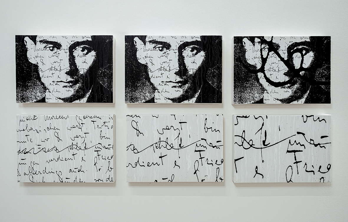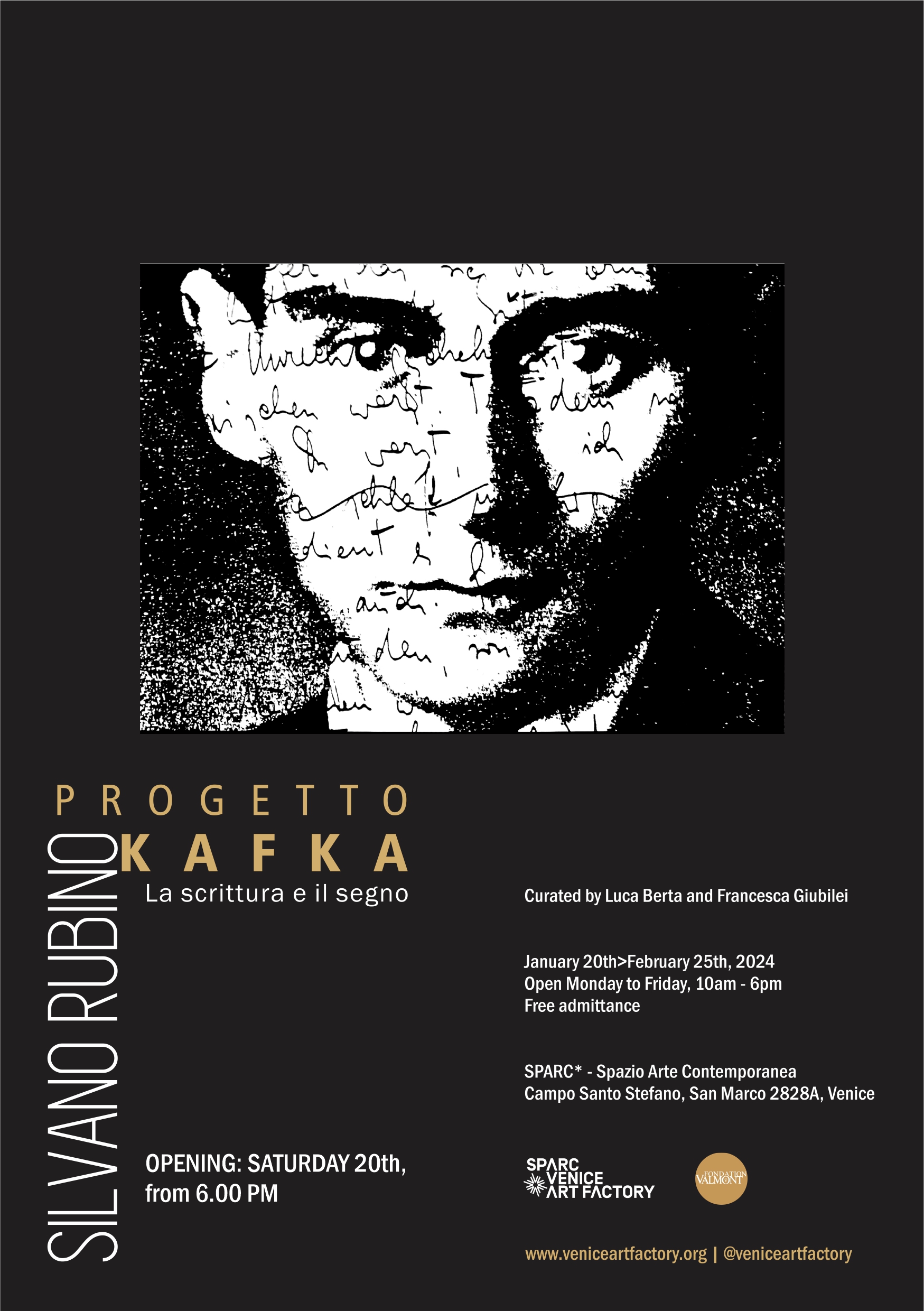 Nella nuova mostra Progetto Kafka. La scrittura e il segno, ideata in occasione del centenario della morte di Franz Kafka (3 giugno 1924), Silvano Rubino riparte dal lavoro realizzato sullo scrittore nel 1993 e lo espande, approfondendo la ricerca sul senso della scrittura e della parola.