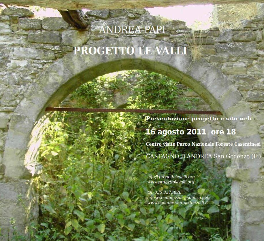 Un progetto di arte contemporanea ideato da Andrea Papi, che si propone di recuperare la struttura abitativa e viaria stratificatasi nella montagna, dopo l’abbandono sistematico e la poderosa rimozione culturale avvenuta a partire dal dopoguerra. Attraverso un sito web ed altre azioni di stimolazione ed interazione rivolte agli abitanti e a coloro che hanno interesse per il territorio di San Godenzo, il progetto cerca di favorire il recupero della memoria e la ricostruzione dell’identità architettonico-relazionale dei luoghi, non dimenticando il dibattito attuale su architettura e paesaggio e più in generale sulla sostenibilità del rapporto uomo-natura.