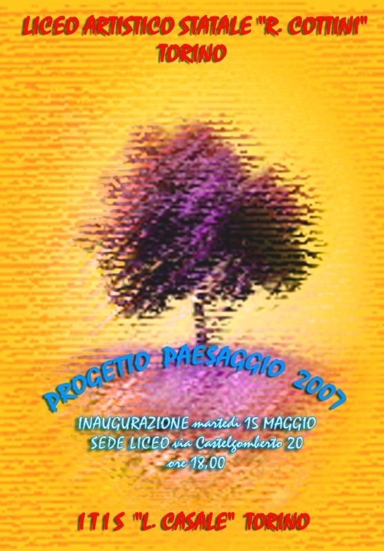 PROGETTO PAESAGGIO 2007 - Il Progetto Paesaggio 2007, quest'anno, è rivolto all'ITIS “Luigi CASALE” di Torino. Alcune classi del Liceo Artistico R.Cottini di Torino si sono impegnate nell'elaborazione di opere sul tema del paesaggio per arredare i locali dell'Istituto Tecnico suddetto, che aveva richiesto il progetto.