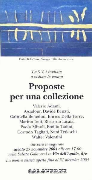 Saranno esposte opere di varie tecniche dei seguenti autori: Valerio Adami, Assadour, Davide Benati, Gabriella Benedini, Enrico Della Torre, Marino Iotti, Riccardo Licata, Paolo Minoli, Emilio Tadini, Corrado Tagliati, Nani Tedeschi, Walter Valentini.