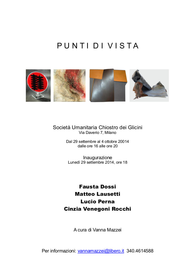 Gli artisti invitati: Fausta Dossi, Matteo Lausetti, Lucio Perna e Cinzia Venegoni Rocchi, hanno in