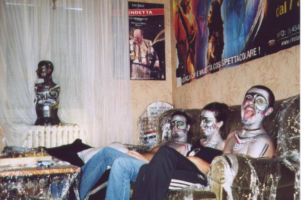 Ilaria Sebastianelli affida ad una messa in scena di chiaro stampo situazionista la sua denuncia dei nuovi idoli massmediatici, la cui sempre più pressante interferenza relega l’individuo in uno stato di assuefazione. Nelle sue performance, che coinvolgono “attori” e pubblico, l’artista non fa uso né di mezzi sofisticati né di particolari effetti…Basta un ambiente familiare e piccoli accorgimenti scenici; “il tutto condito con un fiume appiccicoso di Cellofan che si attacca come un virus e che distorce la realtà del diverso rendendo tutto un grosso “uguale”.