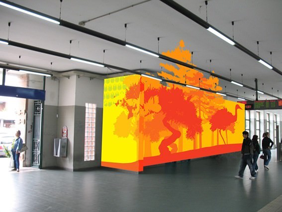 Dal 4 al 21 giugno Matteo Milaneschi e Andrea Venanzi, uno scenografo e un designer, decoreranno l’intera superficie della stazione mentre la struttura rimarrà funzionante ed agibile, senza disagi per i viaggiatori. I due artisti creeranno sulle pareti della stazione un’ambientazione scenografica, un’opera d’arte globale e permanente che renderà questo luogo unico.