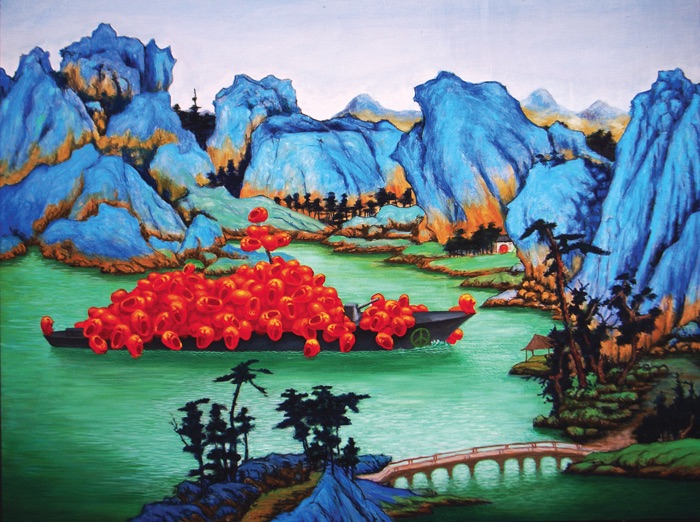 Il suo obiettivo è quello di farsi capire con un linguaggio universale, dialogare con l’umanità intera, quindi spesso egli inserisce simboli cinesi e occidentali, mescolando il surrealismo agli elementi pop.