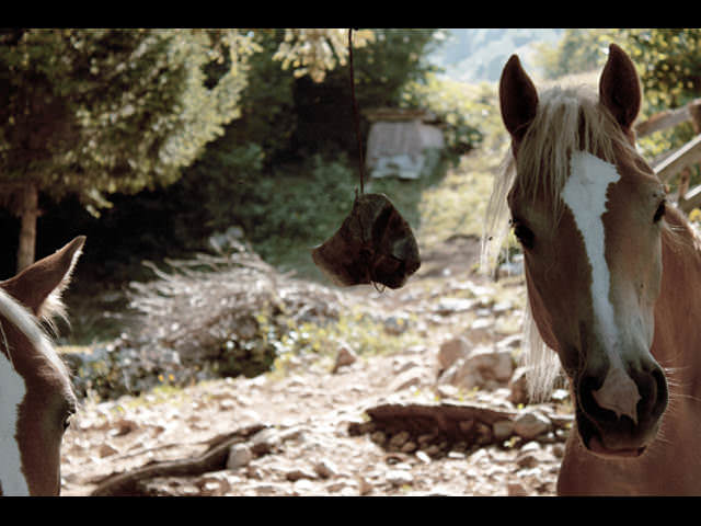 Ho seguito per diversi mesi una mandria di cavalle selvatiche lungo le dorsali delle Dolomiti del Brenta, notando come nelle ore più calde si ritirassero sempre nel medesimo luogo all'interno del bosco, dove leccavano le pietre di granito presenti nel terreno in quella zona. Oltre che per assumere delle piccole quantità di sale, necessarie per rigenerare l'organismo, mi è sembrato che quell'azione esprimesse un vero e proprio impulso scultoreo. Successivamente mi sono procurato dei blocchi di sale che ho appeso all'albero dove solitamente le cavalle si fermavano e, come avevo immaginato, il blocco di sale è diventato l'oggetto del loro duplice impulso: nutritivo e scultoreo. L'informe e opaco blocco di sale dopo alcuni giorni si trasformava in una materia traslucida e levigata, in una forma complessa, a tratti geometrica e architettonica, che suggerisce l'idea di organo, di una nuova e sconosciuta genetica. L'atto di dare forma alla materia attraverso la lingua ha suggerito nuovi spunti alla mia ricerca di un linguaggio slegato dal concetto di storia ufficiale e alle modalità semiotiche ad essa connesse.