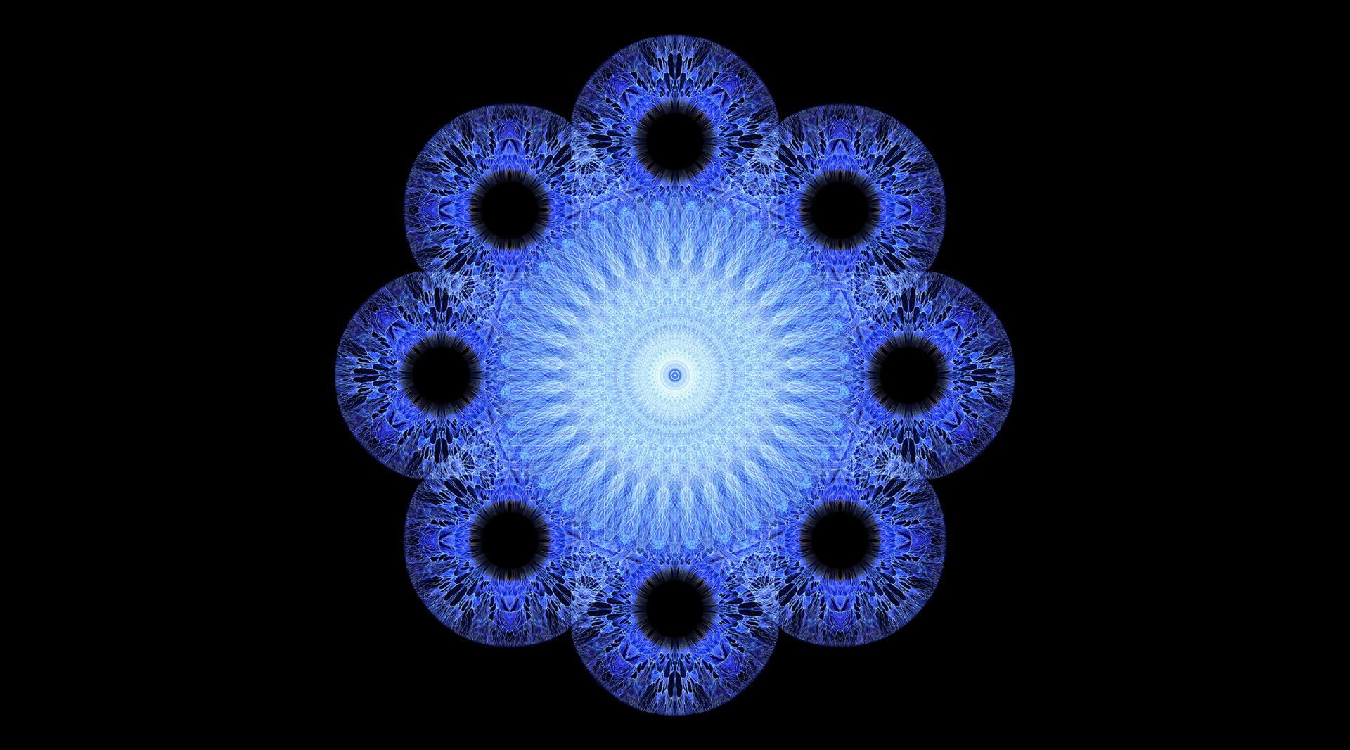 l’andamento ipnotico e rotatorio delle forme conducendo lo spettatore in un viaggio dentro
