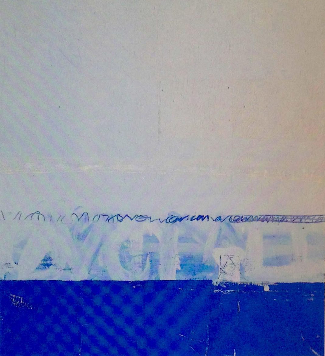 La presenza del verso poetico e' azzerato dal colore rosso, viola, blu e ocra, il verso gioca con la propria ombra, si nasconde in una luce rarefatta che sfalda la consistenza del colore.